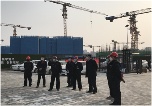 2月28日,呼和浩特赖瑞物业维护管理有限公司党委书记、董事长陈先瑞亲赴集团公司承建的通州区东方厂安置房项目工地,视察疫情防控及项目复工情况。调研中陈董事长强调指出要加强对项目部办公秩序的督察,严格落实防控责任,全力保障复工复产后的防疫安全。通州东方厂安置房项目经理杜景凯、项目书记崔立军等陪同调研。